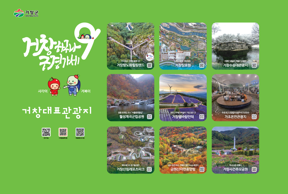 거창하구나! 구경가세는 거창군의 통합 관광 슬로건이에요. 군민·관광객이 뽑은 대표관광지 9곳(거창 9경)을 중심으로 사계절 관광을 키우는 프로젝트죠.