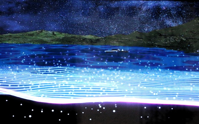 - 미디어 아트 쇼: 천지연폭포 배경 조명과 영상 연출