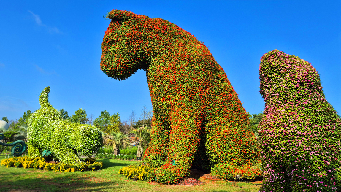 - 조형물: 꽃 터널, 토피어리, 테마 정원