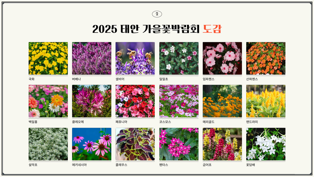 - 하이라이트: 국화·버베나·클레오메 등 가을 대표 꽃 전시