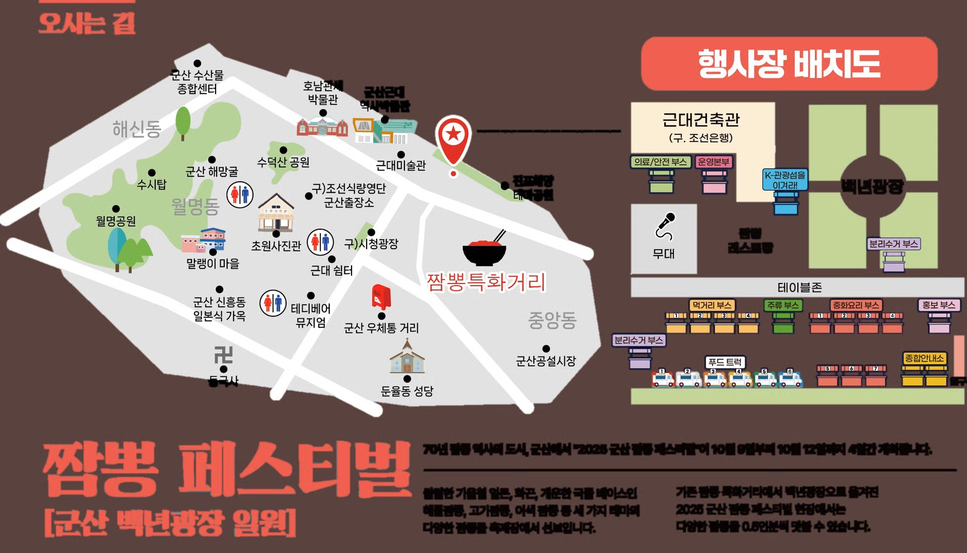 장미동 일대와 짬뽕특화거리, 백 년 광장 일대를 축제 공간으로 활용해 2025 군산 짬뽕 페스티벌을 개최합니다.