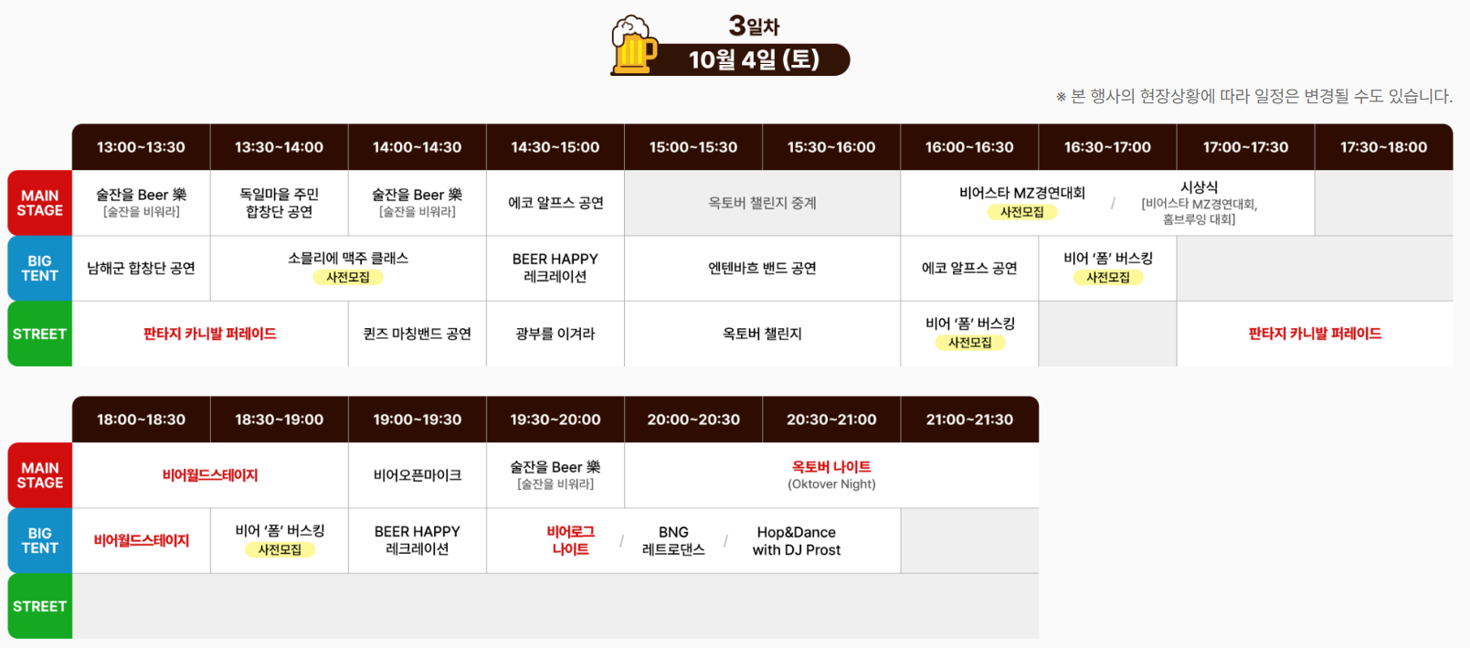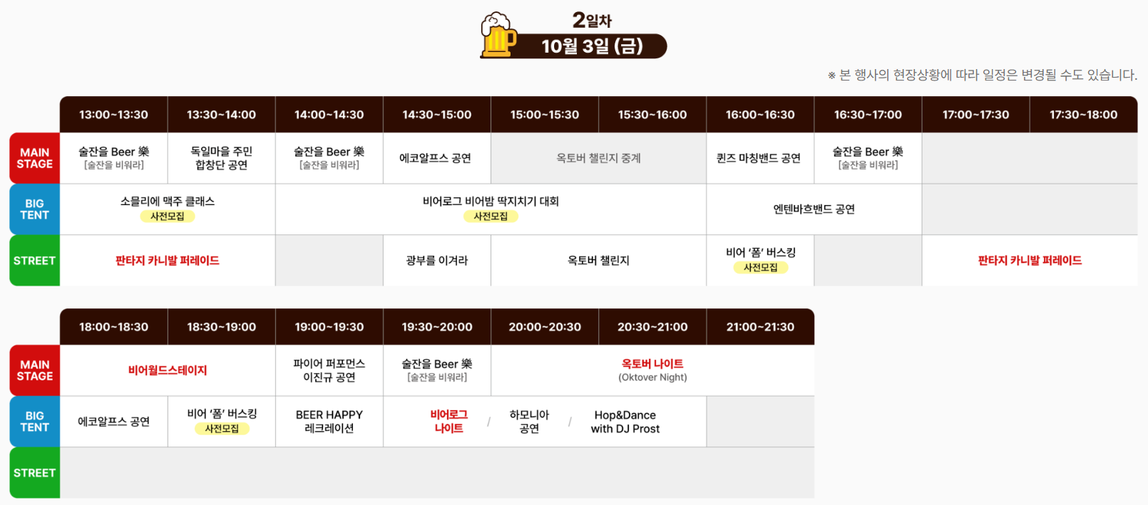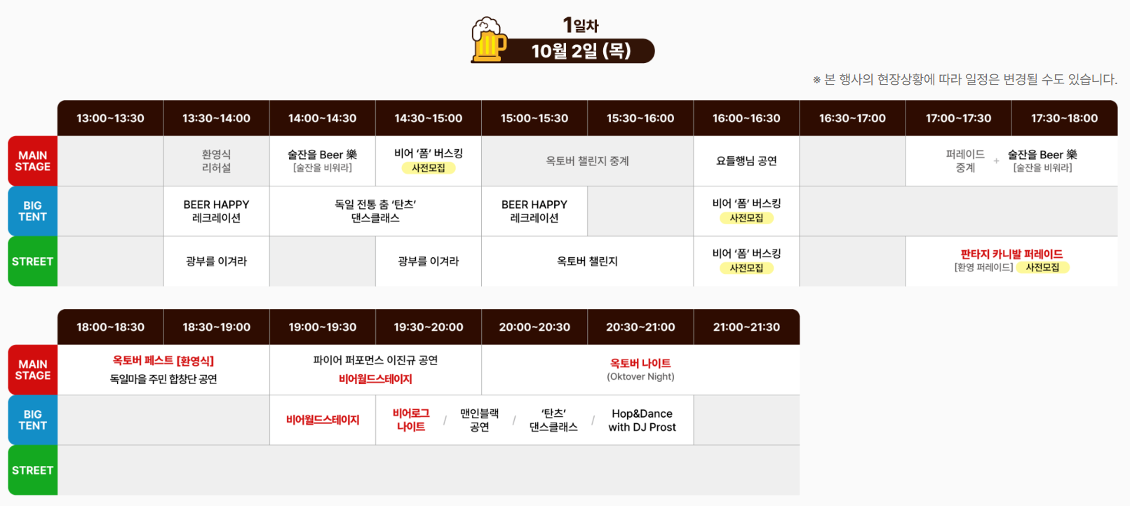1. 축제 정보 · 주요 프로그램 · 일정표