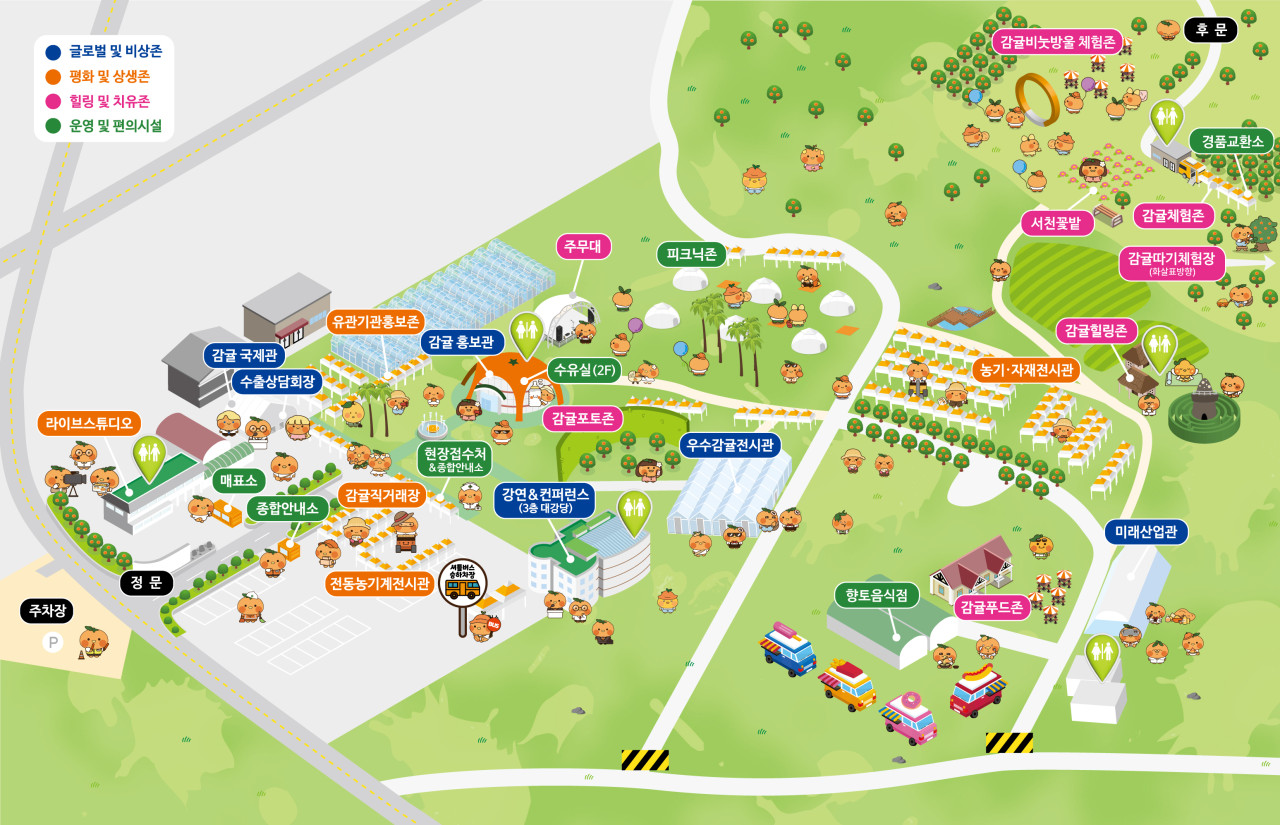 주요 프로그램: 감귤 품종 전시, 시식 체험, 감귤 가공품 판매, 스마트팜 기술 부스, 문화 공연